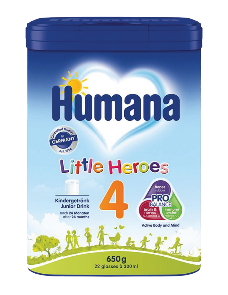 Our Humana 4 Little Heroes drink supports your toddler's active body and mind by providing all necessary ingredients for an age appropriate cognitive and motoric development.