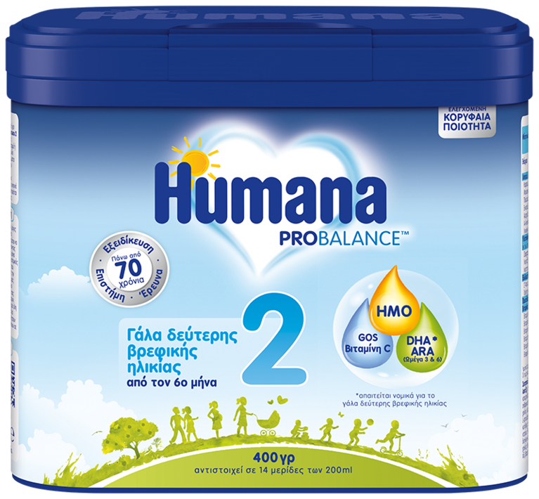 Το γάλα δεύτερης βρεφικής ηλικίας Humana 2 είναι ιδανικό για την ηλικία απογαλακτισμού, μετά τους 6 μήνες ως μέρος μιας ισορροπημένης διατροφής, για να υποστηρίξει την ανάπτυξη του μωρού σας.